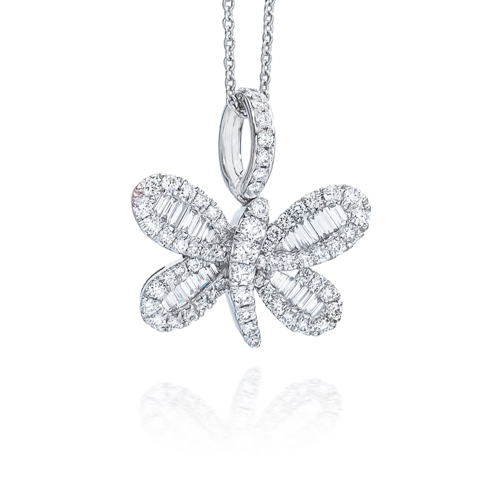 | Type | White Gold Butterfly Baguette Charm with Chain, 18k White Gold Charm |