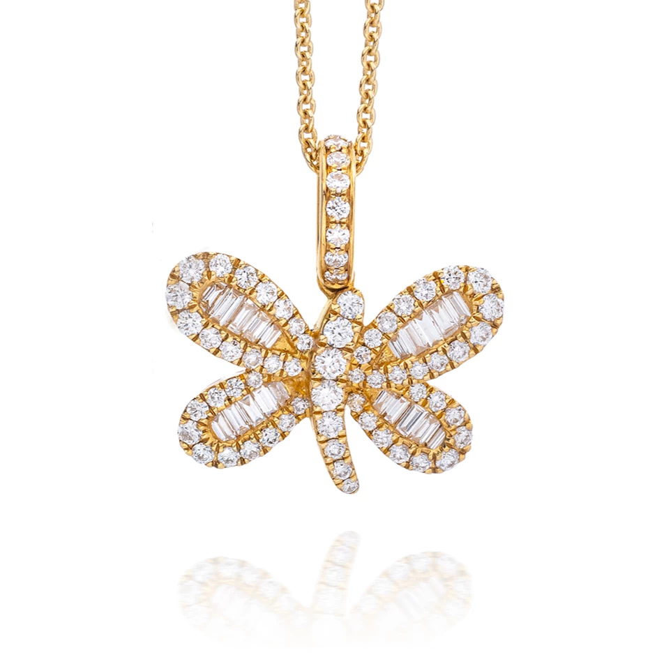 18K Baguette Diamond Butterfly Charm in Yellow Gold;