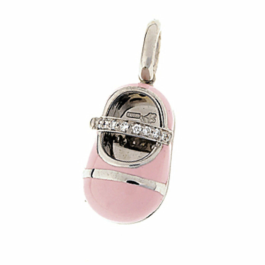 Celebrate the beautiful baby girl in your life with a signature Girl Baby Shoe Charm handcrafted by Aaron Basha. This simply elegant charm features an eye-catching diamond shoe strap for added sparkle.