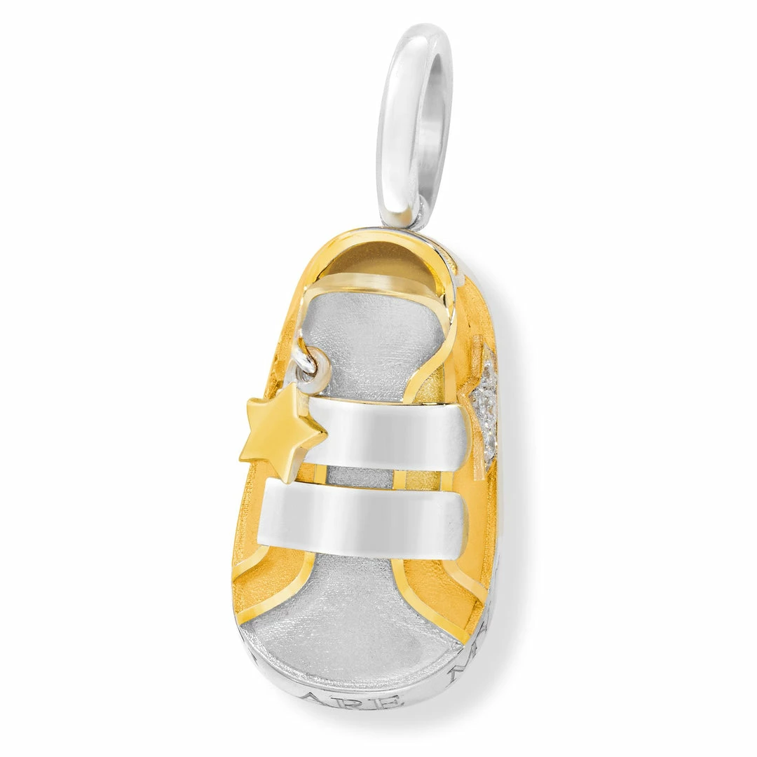 18K White Gold toe/YG body double strap sneaker with hanging star; .08ct.