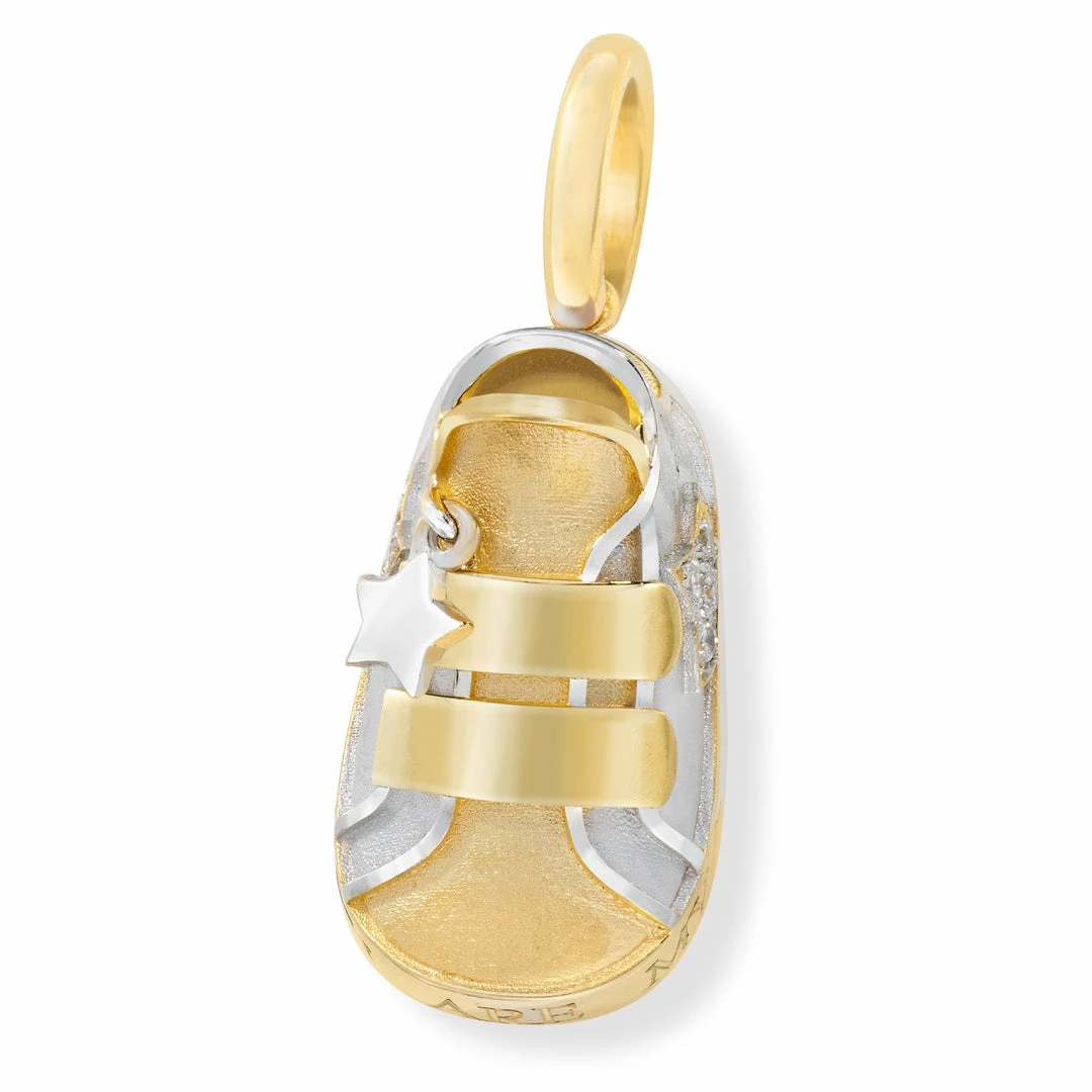 18K Yellow Gold Toe/WG body double strap sneaker with hanging star; .08ct.