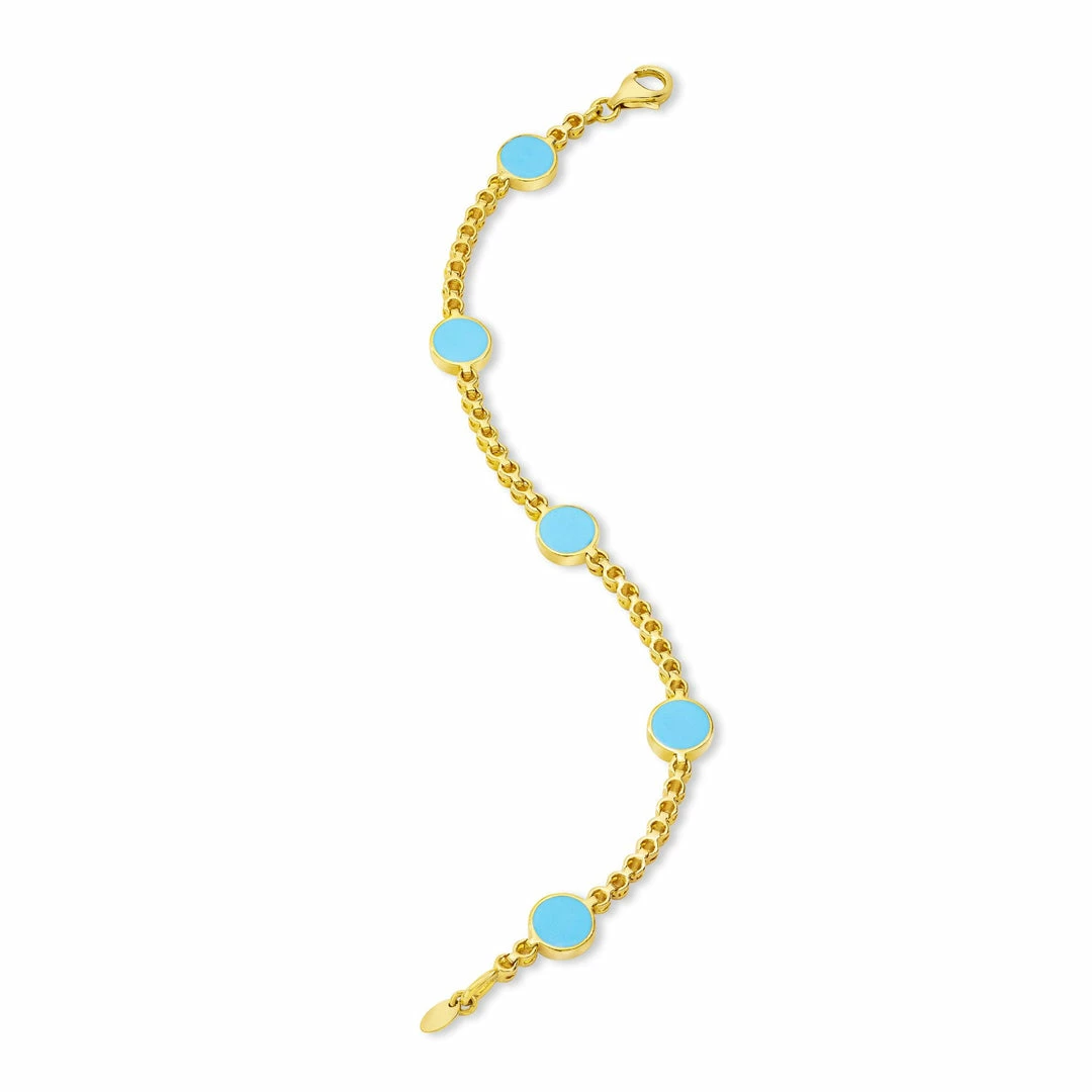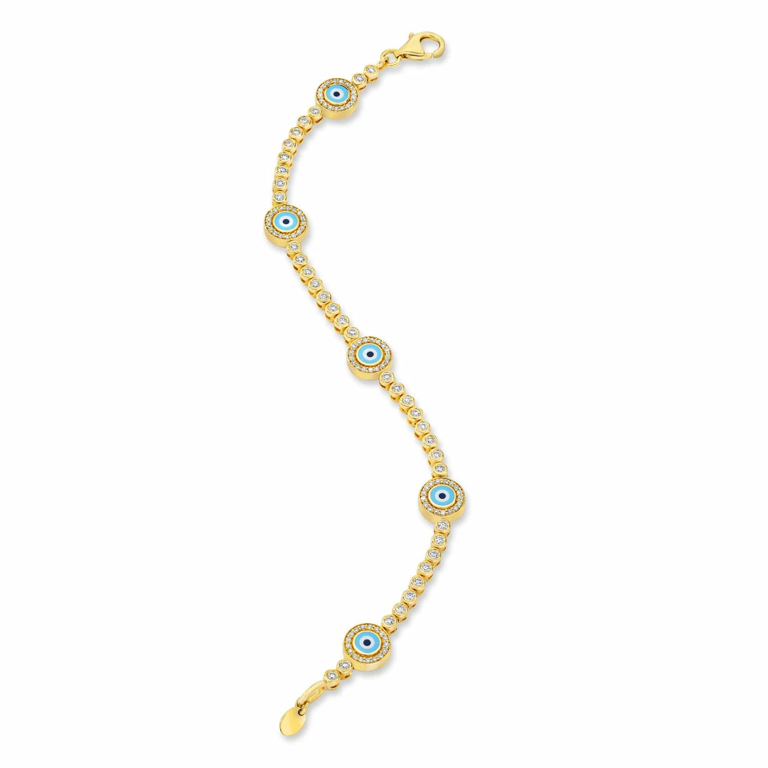 18K Yellow Gold Full Pave Diamond Bracelet with 5 Small Round Light Blue Evil Eye; 1.48 Carat