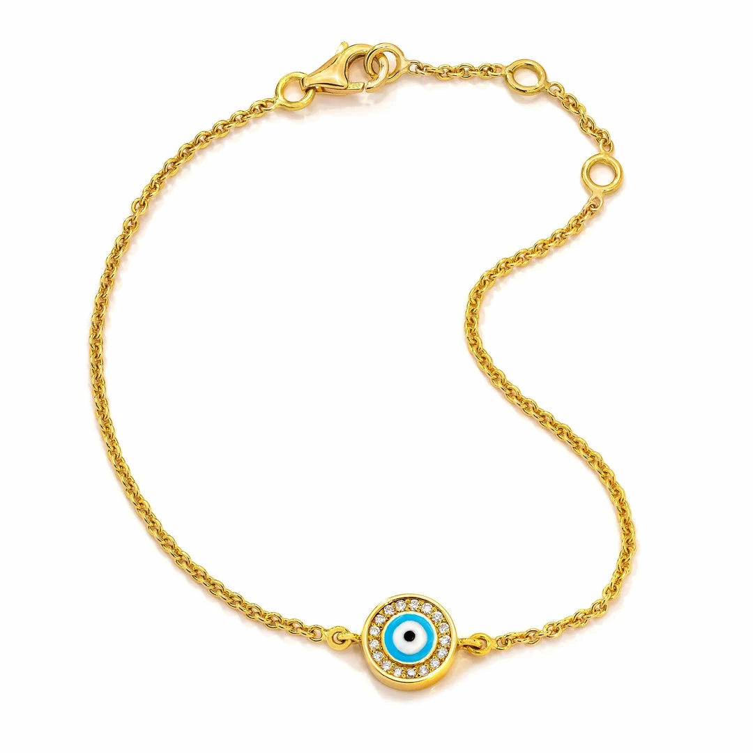 18K YG Evil Eye with Diamond Rim on Single Strand Bracelet; .12 Carat