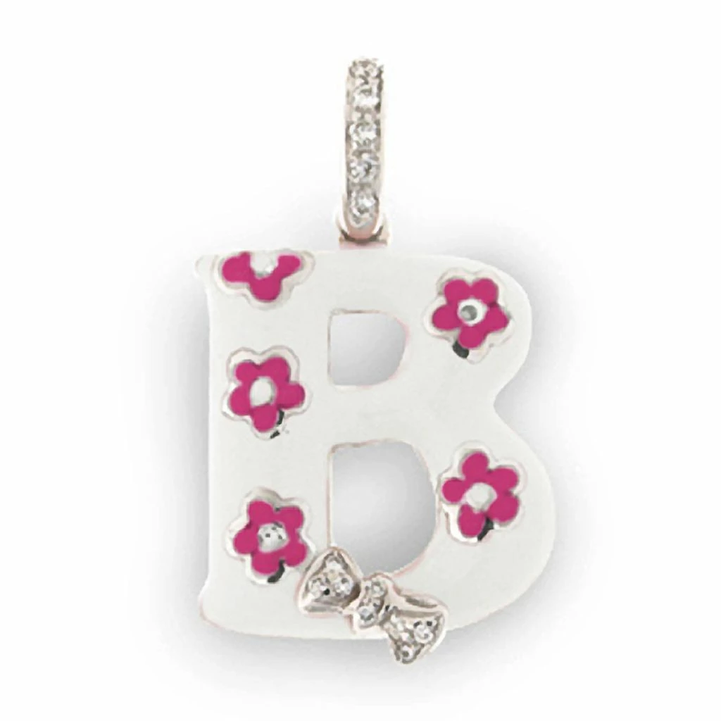 18K White with Fluorescent Pink Flowers with Diamond Bow and Diamond Bail; .08 Carat