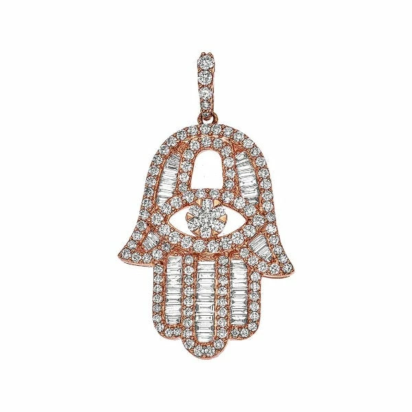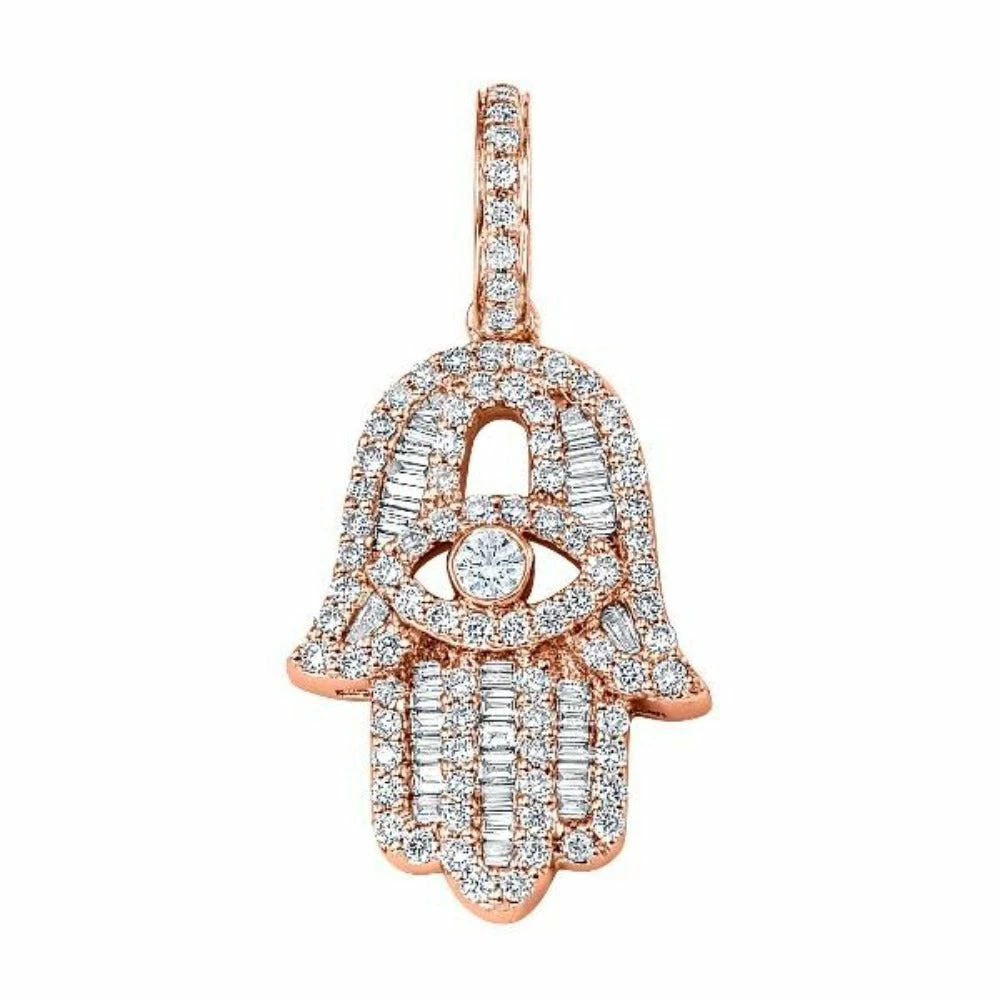 18K Large Baguette Diamond Hamsa with Diamond Eye; 1.68 Ct. t.w.