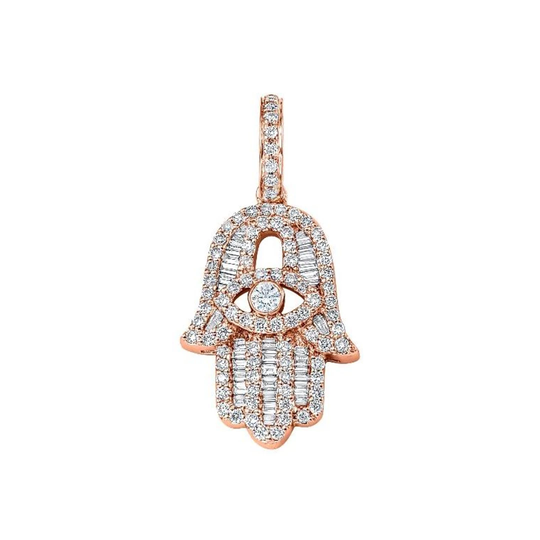 18K Small Baguette Diamond Hamsa with Diamond Eye & Diamond Bail; .45 Ct. t.w