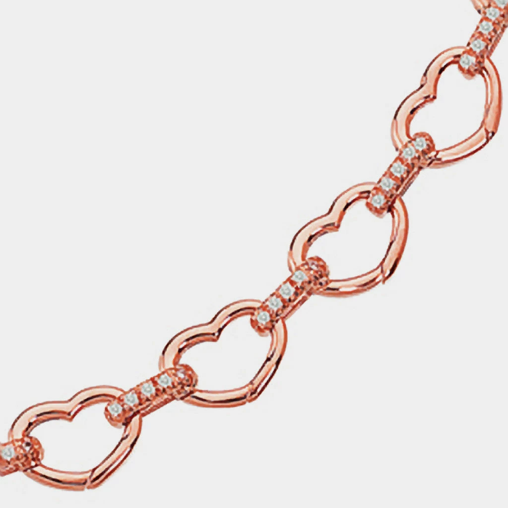 18K 12 (Small) Open Heart Link Bracelet with Pave Diamond Column Bars; .45 Carat