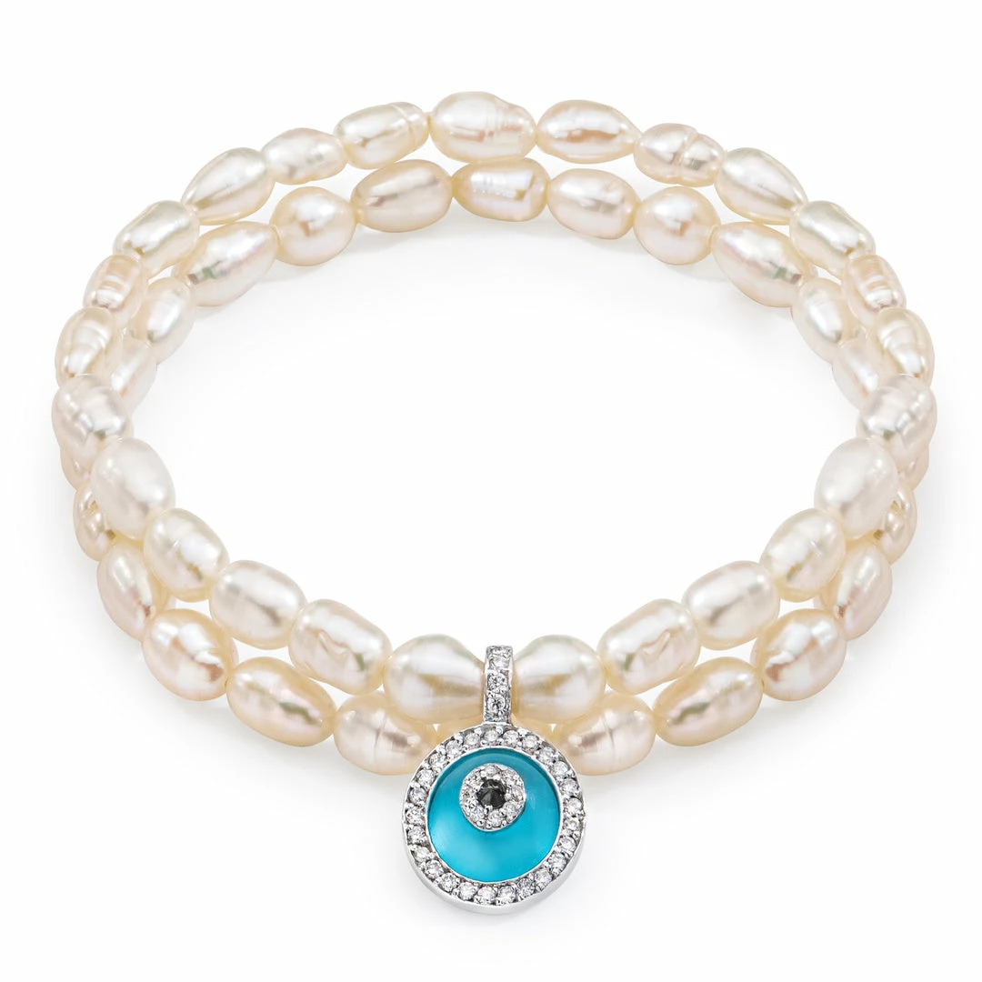 This set consists of fresh water pearls with blue eye charm & an additional matching bracelet to pair with your charm bracelet.