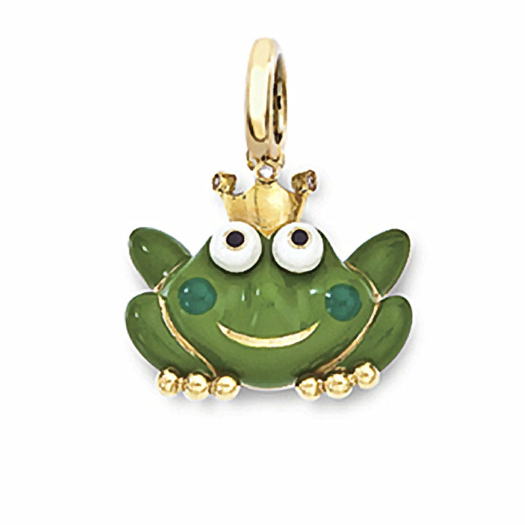 18k gold enamel frog with diamond crown