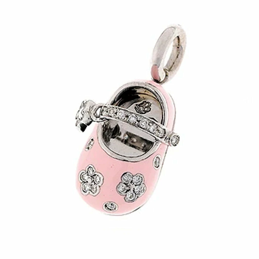Celebrate the beautiful baby girl in your life with a signature Girl Baby Shoe Charm handcrafted by Aaron Basha, decorated with diamond floral designs for added charm.
