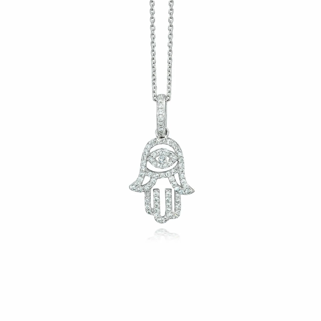 18K White Gold Open Hand Hamsa with Eye with Diamonds