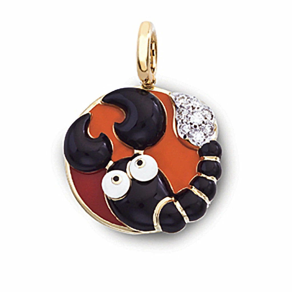 18K Scorpio Charm “The Scorpion” Black enamel with Diamond tail; .12 ct.