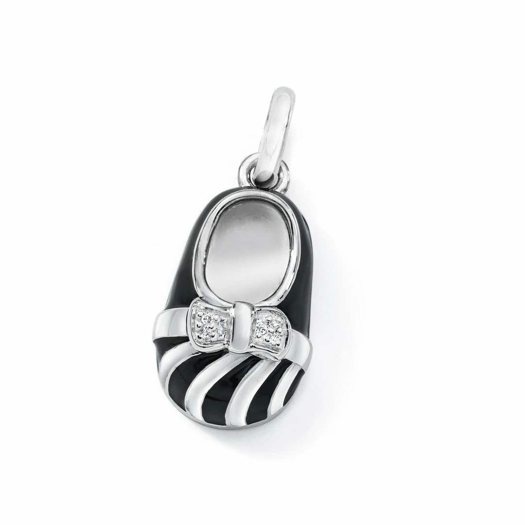 Crafted in silver with hand made enamel and a diamond at the bow, always keep your child or grandchild close to your heart.