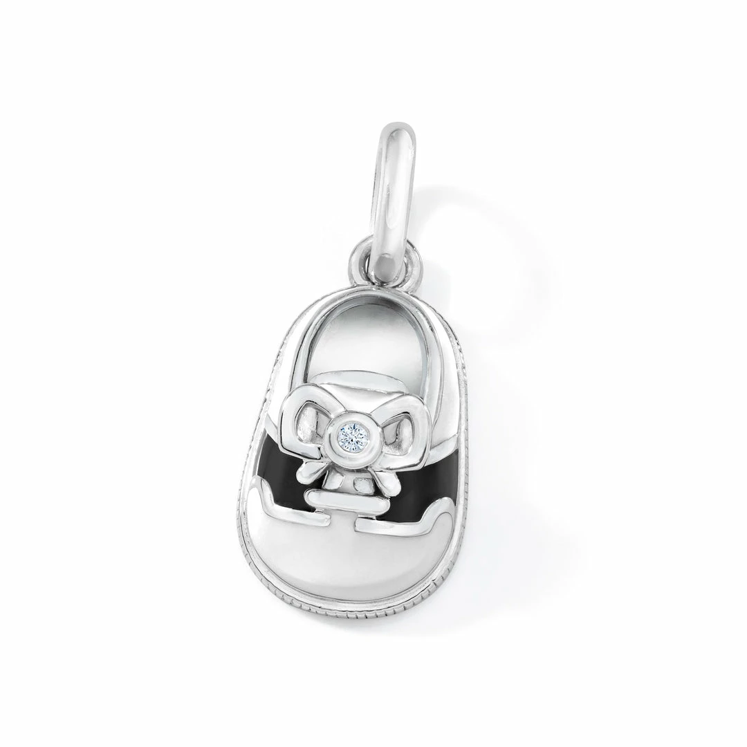 Crafted in silver with hand made enamel and a diamond at the bow, always keep your child or grandchild close to your heart.